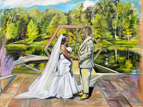 Our skilled artists specialize in live painting those memorable moments from your wedding day. Whether it's capturing the heartfelt exchange of vows or creating a beautiful portrait of the bride and groom, we ensure that your special day is transformed into a lasting work of art.